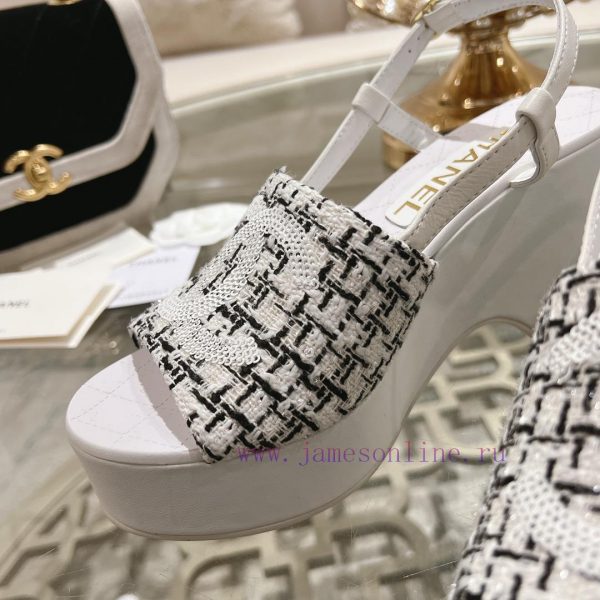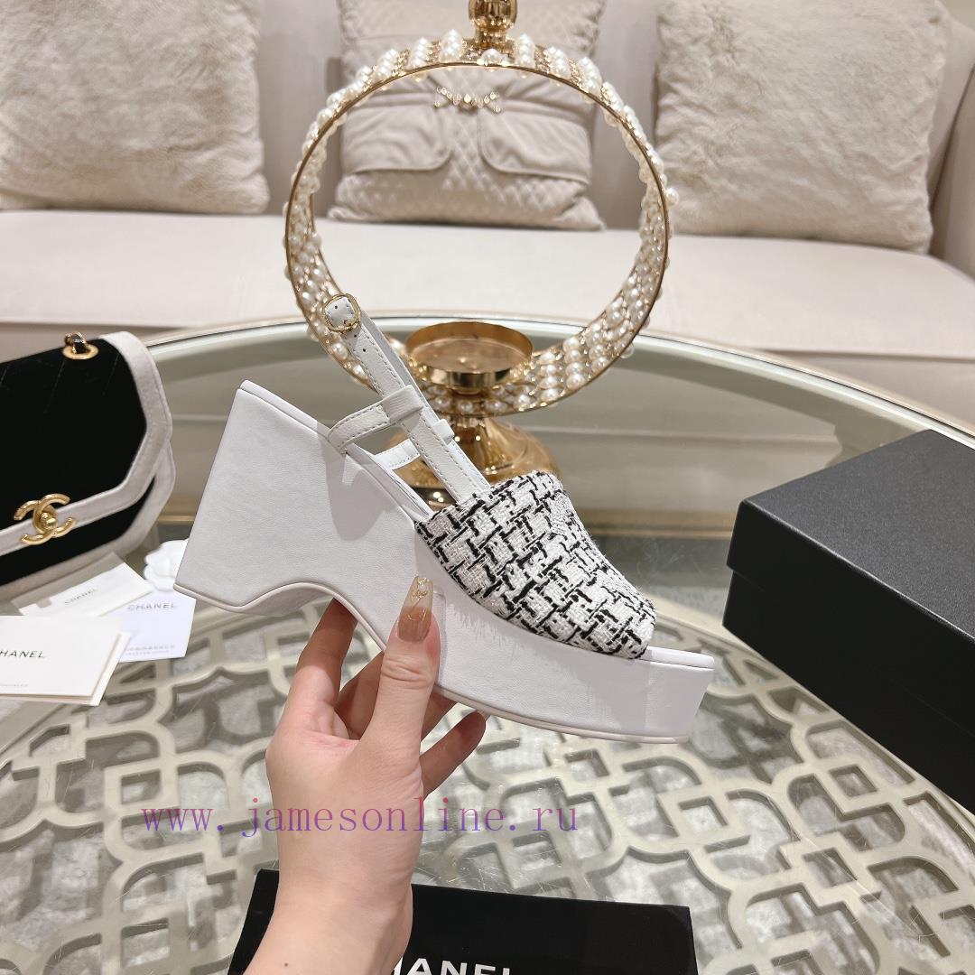 Chanel SS24 new arrival~Chanel classic wedge sandals with classic colors for spring and summer, simply amazingOriginal molded fabric with lambskin lining insideShoe material, craft packaging, synchronized with authentic productsSize34-4134 40 41 customized, non refundable