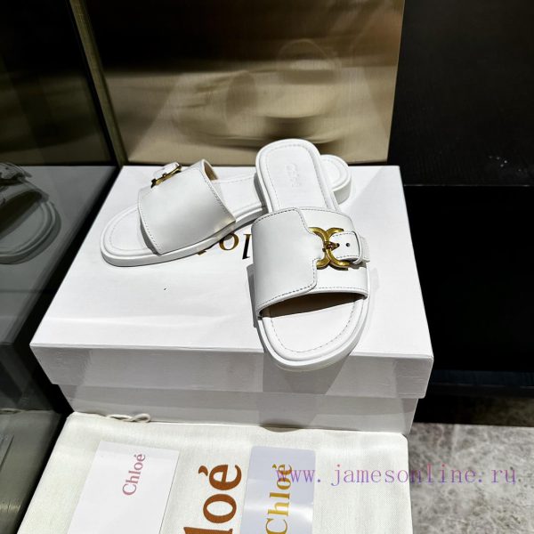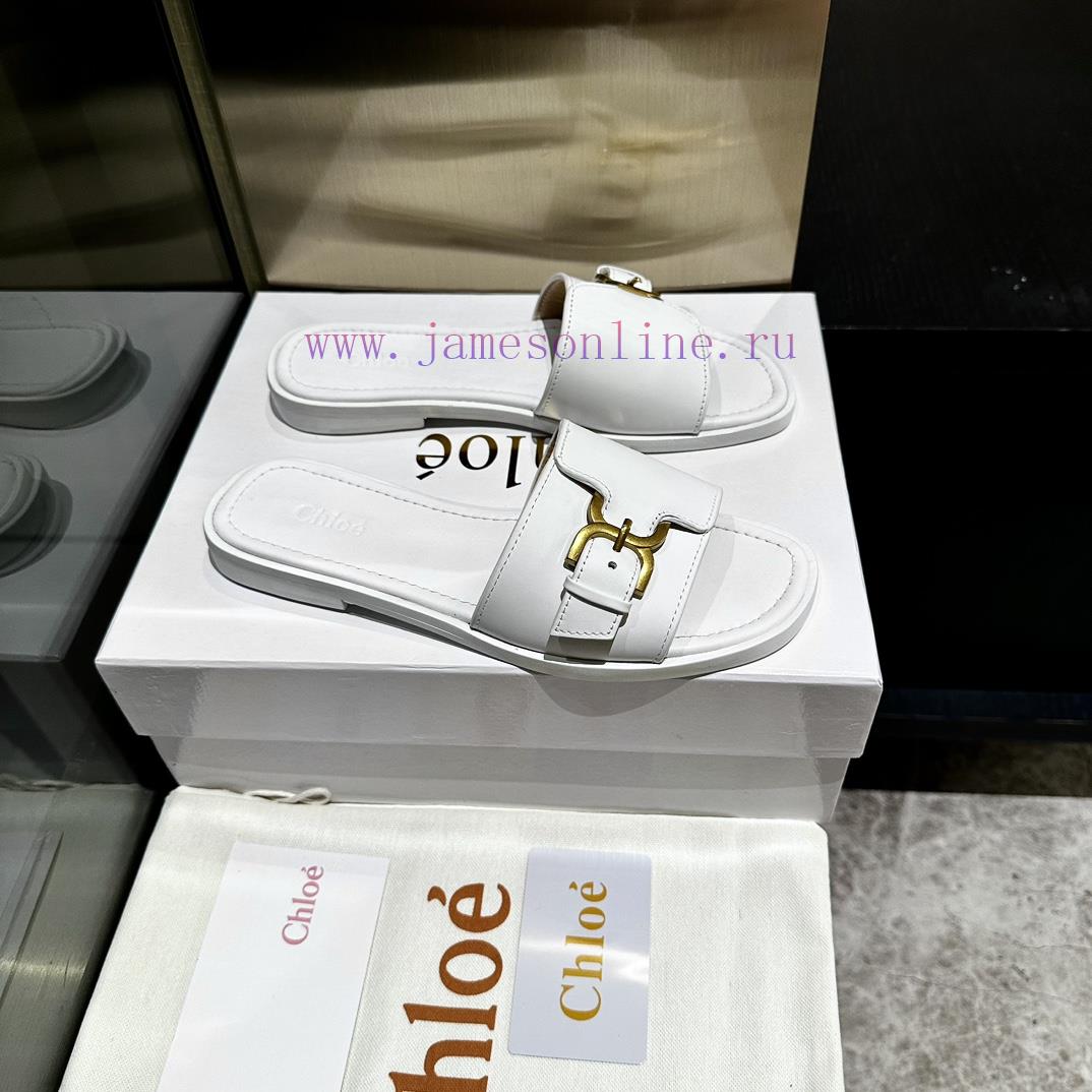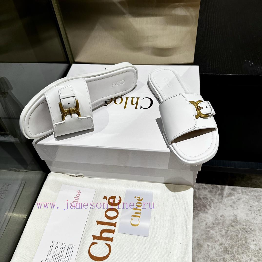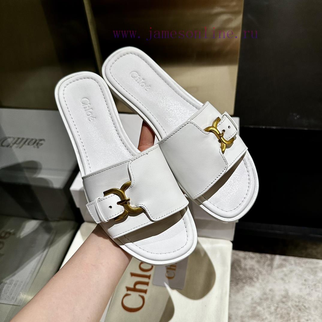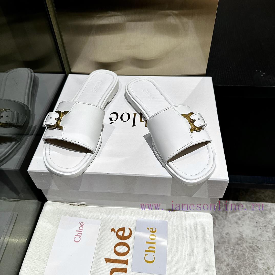 Chloe’s latest cowhide slippersImported custom-made small gold buckle, original private modelx1k1783