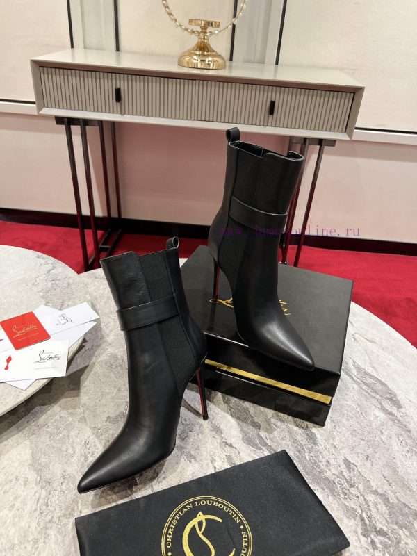 Generation level * ️The CL Chelsea Trophy Boots showcase clean lines and timeless elegance with their almond shaped and elastic inserts on the sides, made of black calf leather. They are set on a 100mm heel and have a strap with a silver metal CL letter combination. This urban style point is the heel tag, decorated with Maison Christian Louboutin’s iconic nailstexture of materialImported calf leatherElectroplated hardware logo buckleInner footrest made of full sheepskin, Italian leather outsoleCustomized in size 35-4240.41.42, non refundable and non exchangeableColor Black10cm in height