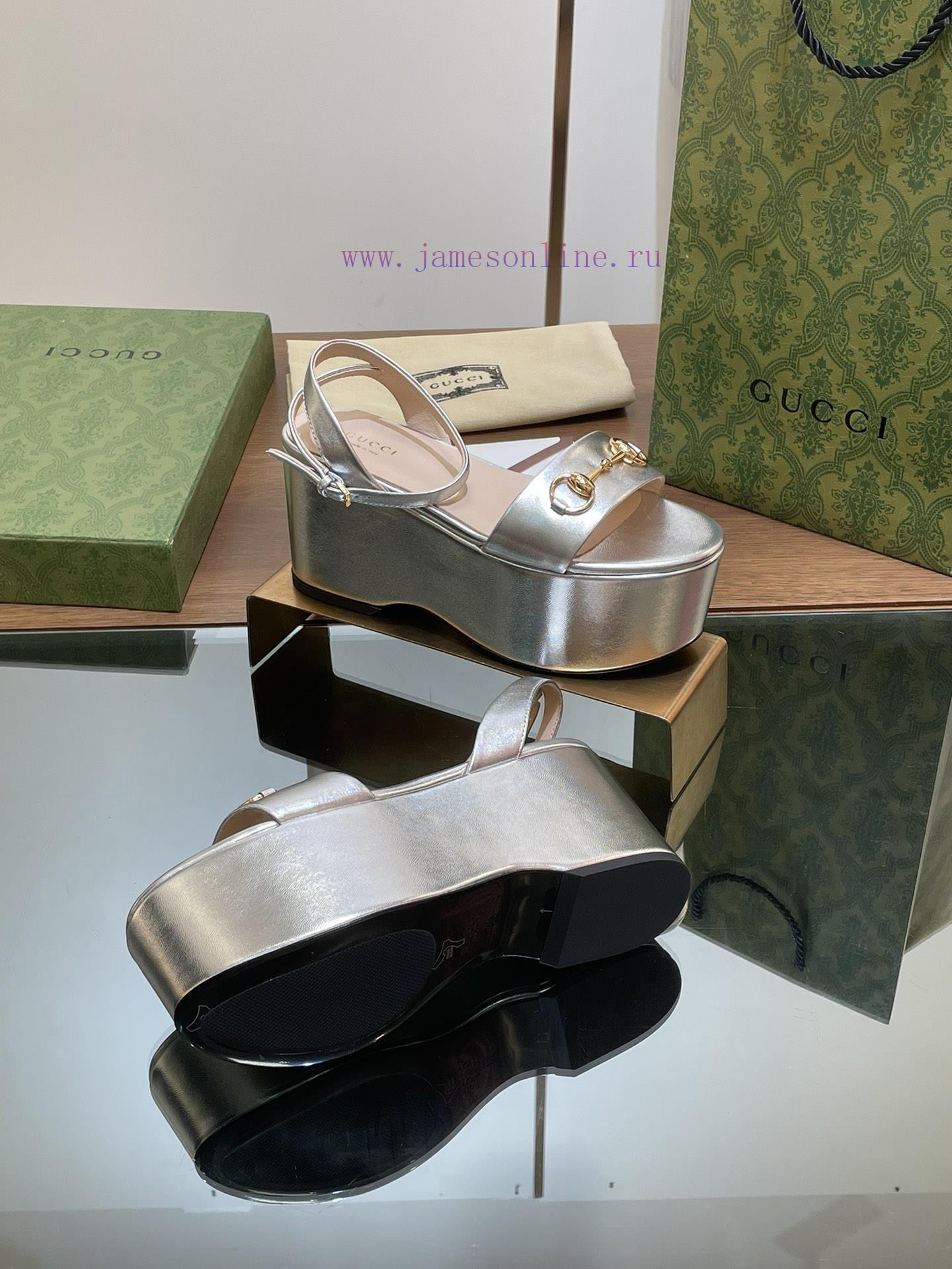Gucci/Gucci2024 Summer New Product Waterproof Platform Saddle Buckle, Horse Hook Buckle Sandals, Slope Heel, Thick Bottom Waterproof Platform, Open Toe Sandals, Essential Shoe Cabinet, Original Last Set, High QualityThe distinctive double ring and long strip elements of this high-heeled water platform sandal make it more decorative. As a tribute to the brand’s equestrian origin, the horse clasp has been tempered by time, integrating the rich historical heritage of the water platform with modern fashion styleImported Metal Leather Original 11 Customized Hardware FabricInner sheepskin foot padsItalian genuine leather outsoleHeel High Heel 8 cmFront waterproof platform 7 cmSizes 35-42 (Order 404142)Full set of green original high-end packagingItalian Creation