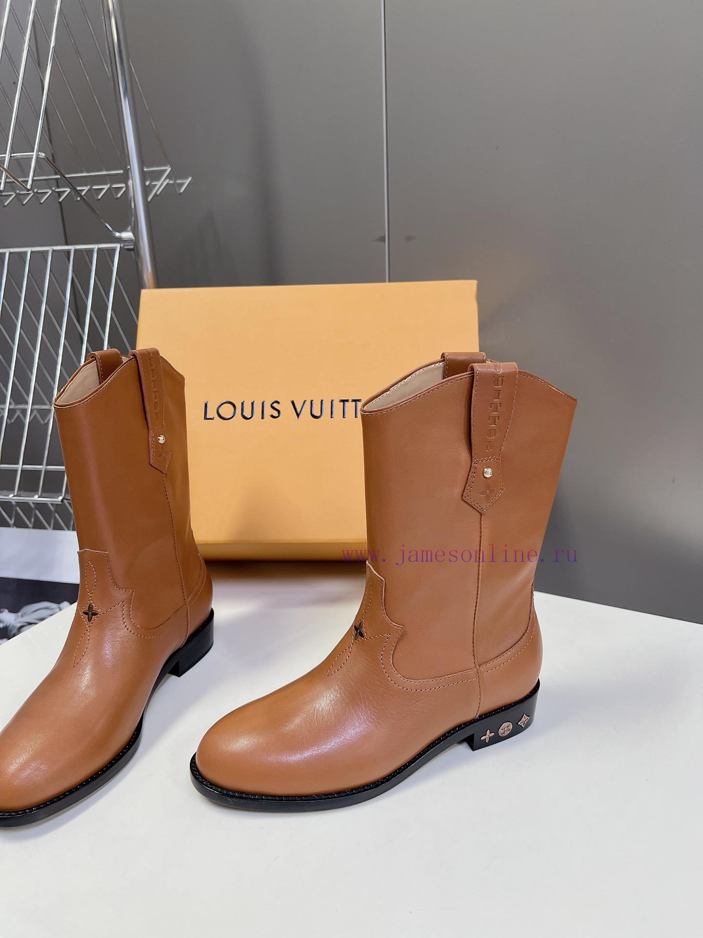Louis Vuitton LV Donkey Home Autumn/Winter Fashion Show New Western Cowboy Boots This boot is highly recommended for its simple design details that showcase the brand logo everywhere. You fell in love with it decisively. [Lips] Simplicity allows you to reflect your temperament at all times. The most important thing is that the boots are very versatile. Good materials and exquisite details are the exquisite features of this bootThe shoe upper is made of imported top layer calf leather,Inner footrest water dyed cowhideItalian imported thick leather outsoleSizes 35-40Comes with original packaging