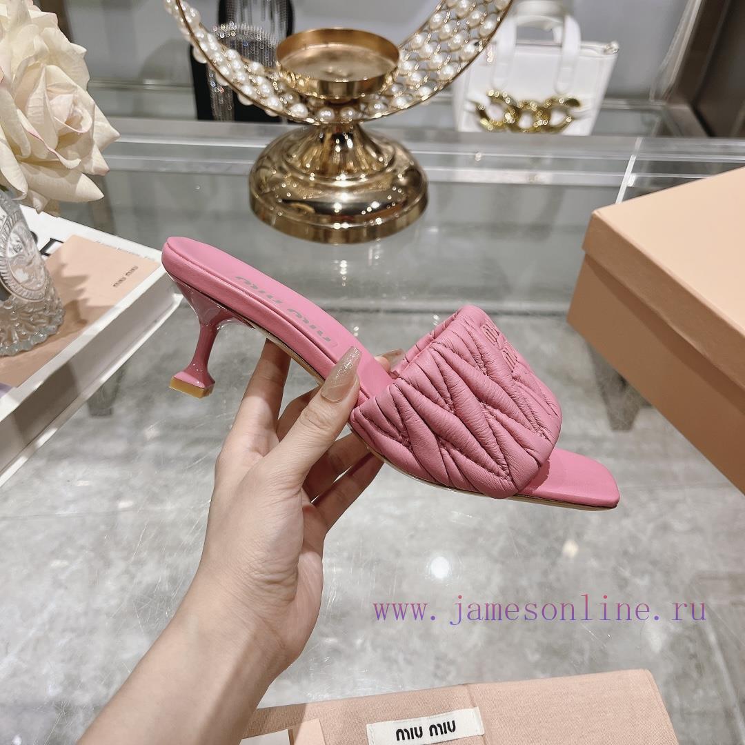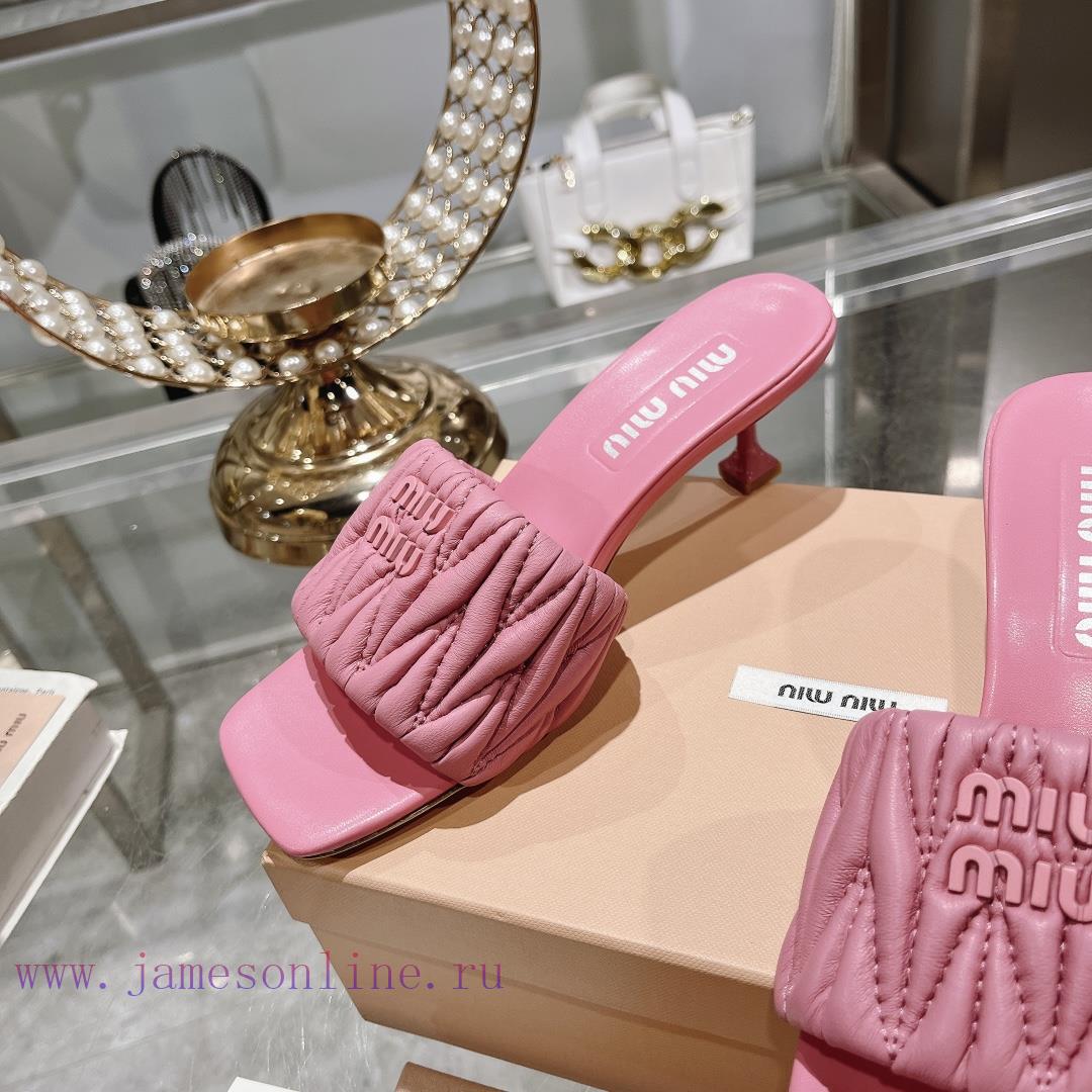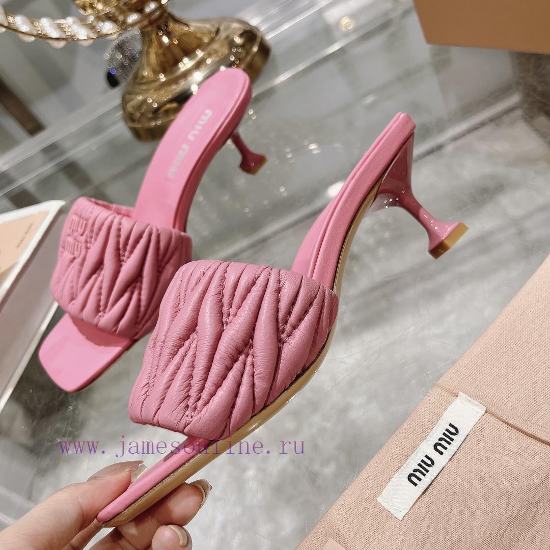 Miu Miu 2024 Spring/Summer New Soft Sheepskin Wrinkled Face Cool Slippers SeriesSweet and sacr3qztd2