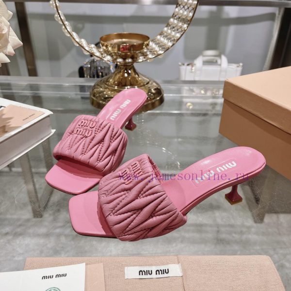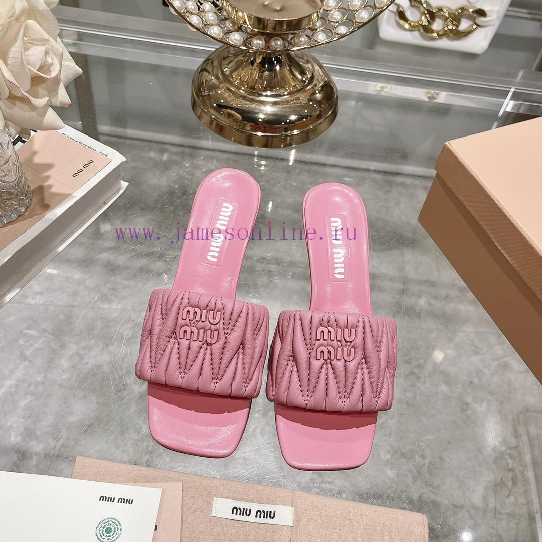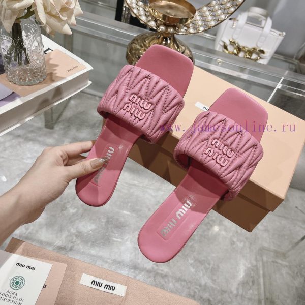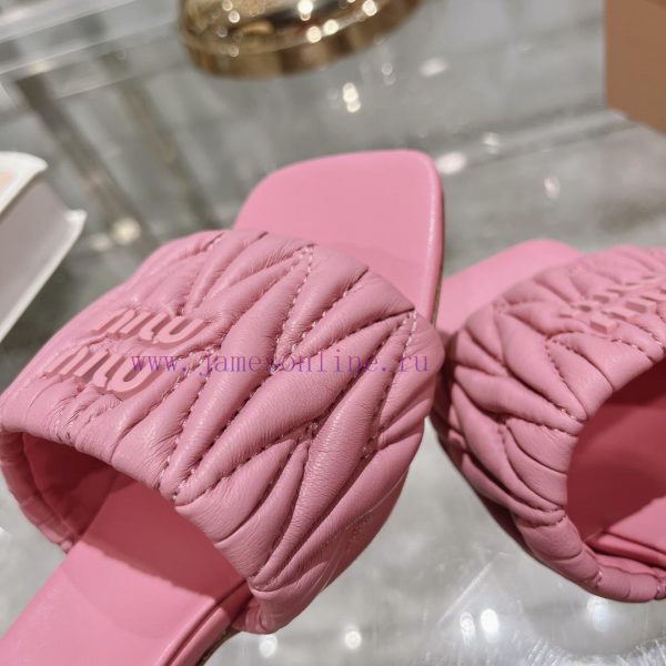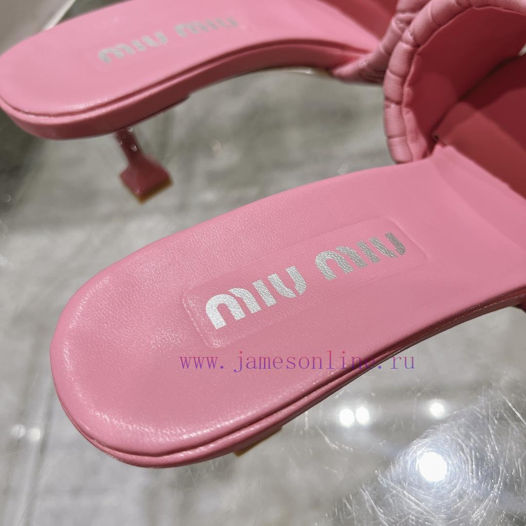 Miu Miu 2024 Spring/Summer New Soft Sheepskin Wrinkled Face Cool Slippers SeriesSweet and sacr3qztd2