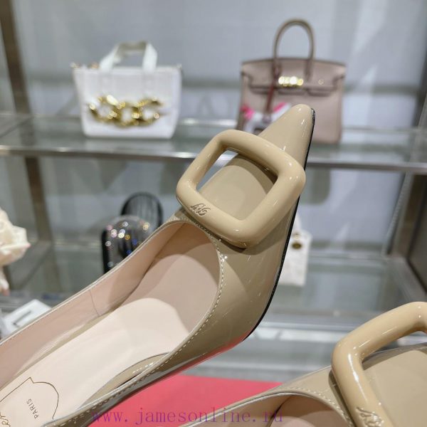 This Viv ‘Choc Lacquer Buckle High Heel is handmade in shiny patent leather, embellished with rounded corners and color matching buckles. The heel is slightly curved, with a simple style and smooth lines. It is elegant and versatile for daily use and night datesLacquer leather shoe upperFangtou DesignBrand painted decorative buckleHeel 8.5cmLeather outsoleSizes 35-39, sizes 40 and above are non refundable and non exchangeableAdapt to the seasons of spring and summerRecommended for daily use