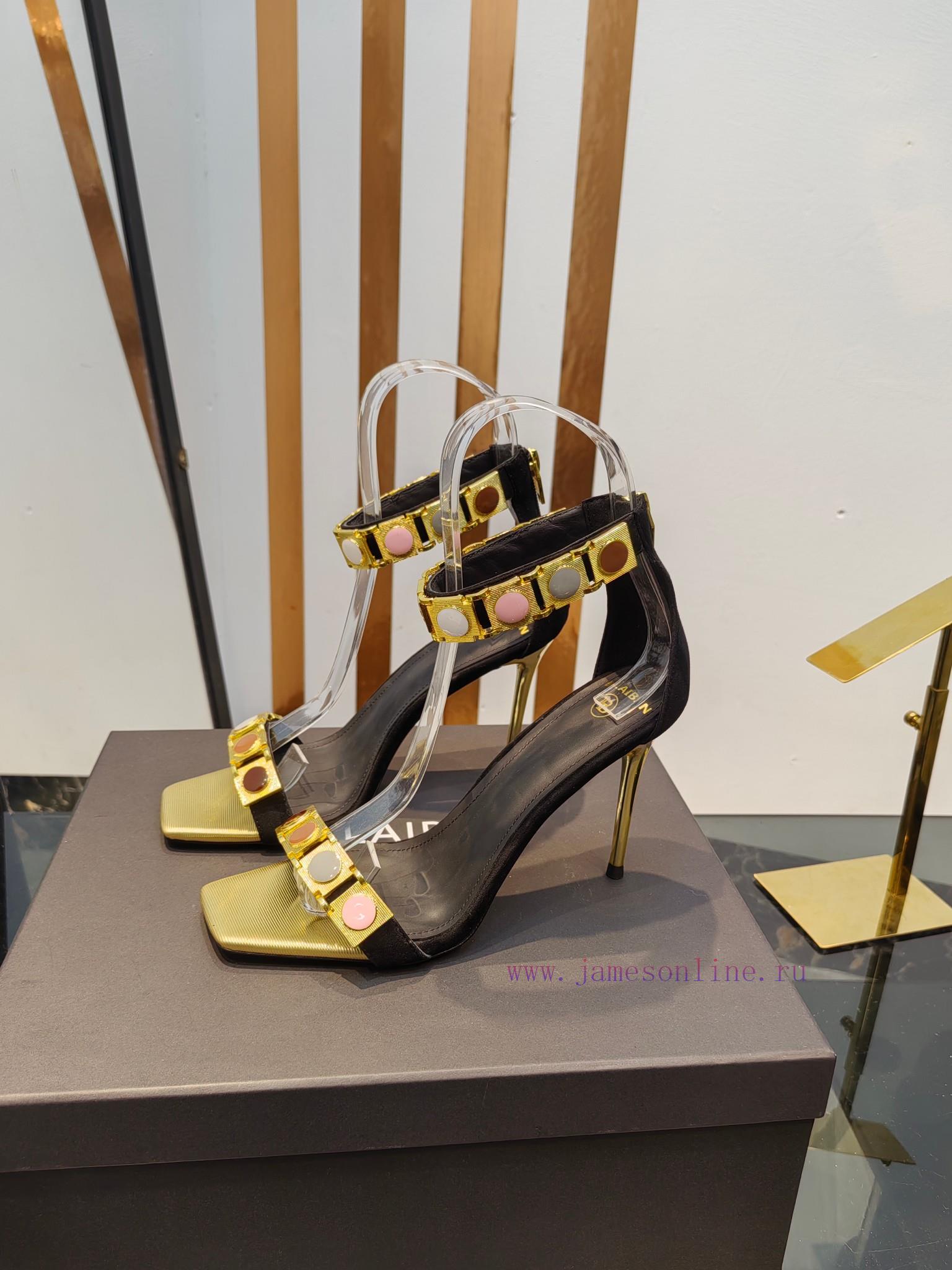 Bal * bin 2025 new square toe high-heeled sandals, imported from Yangjing, with unbeatable and beautiful upper foot, graceful lines, suitable heel height, 9.5CM, super stylish, imported cowhide lining, soft and comfortable, size 36-4240.41.42 customized non refundable