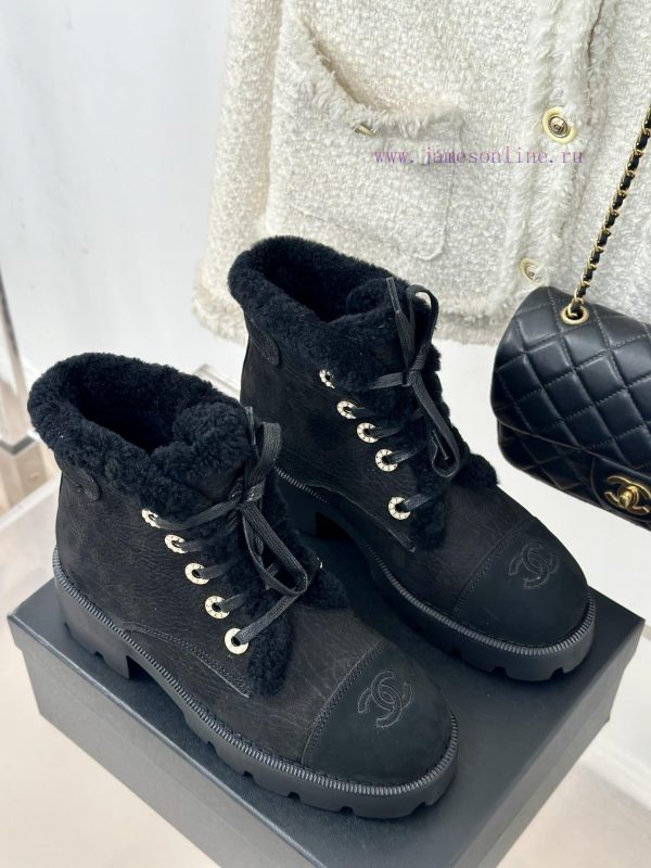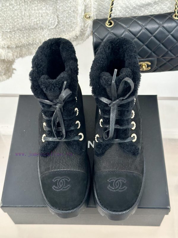 Chanel | Chanel 24K Autumn/Winter New ProductsColor blocked lace up snow boots Martin bootsThis is like a “little heater” for walking in winterI heard it’s a cold winter this year, so be sure to prepare the magic weapon for keeping warmUsing imported Australian wool is very warm and comfortableThe tolerance for feet is also excellentThe whole last is very delicate and not bulky at allThe shoe upper is made of imported top layer cowhideOriginal mold customized anti slip outsoleSize35-39 40/41 Customization