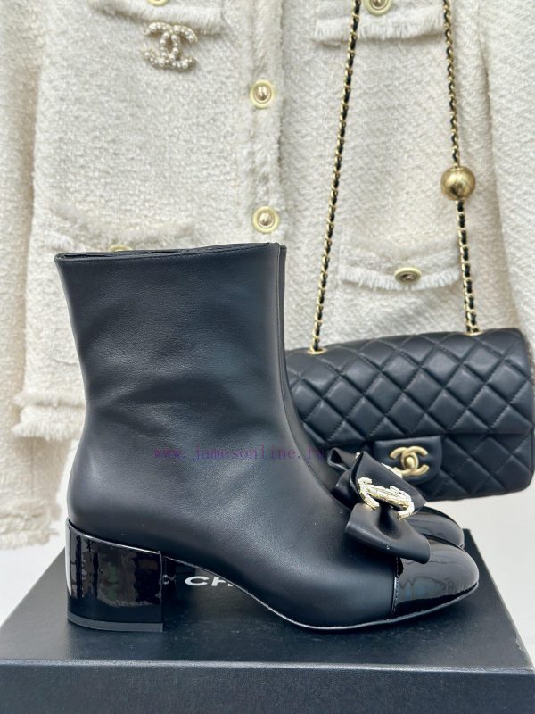 Velvet leather 410Chanel | Chanel Classic Autumn/Winter Bow Pair C Coarse Heel Short Boots~The classic double-C bow design is elegant yet timelessThe design of the shoe shape is very slimmingThe upper foot looks very white, fashionable, elegant, and exudes a great temperamentWhether paired with jeans or a skirt, it can hold up completely~The shoe upper is made of imported velvet/sheepskinThe inner foot pads are all made of sheepskinItalian imported cowhide outsoleHeight of 7cmCustomization for sizes 35-3940/41